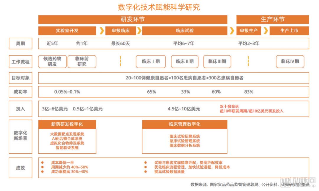 路径一:赋能科学研究。通过对新药研发、生产、质量监管等多流程的数字化赋能,加快研发的进程、改进临床试验管理和消除新产品开发的障碍,提高研发成功率,从缩短新药从研发到批量生产的周期。